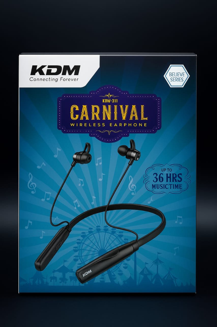 Introducing the KDM Carnival Wireless Earphone, designed for a truly immersive music experience. Whether you're commuting, working out, or just relaxing, this Bluetooth neckband delivers up to 36 hours of nonstop playtime and HD sound quality with rich bass.