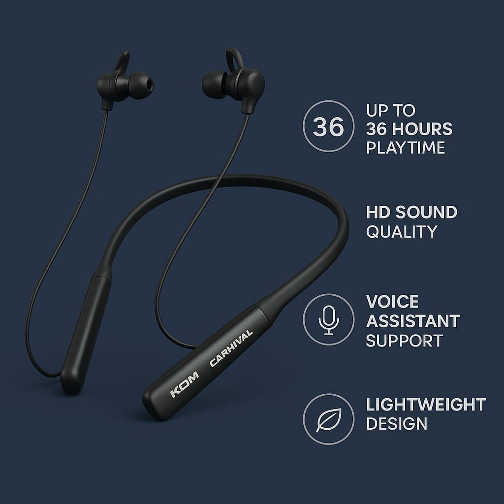 KDM Carnival Wireless Bluetooth Neckband Earphones | 36 Hrs Playtime | HD Sound | Voice Assistant