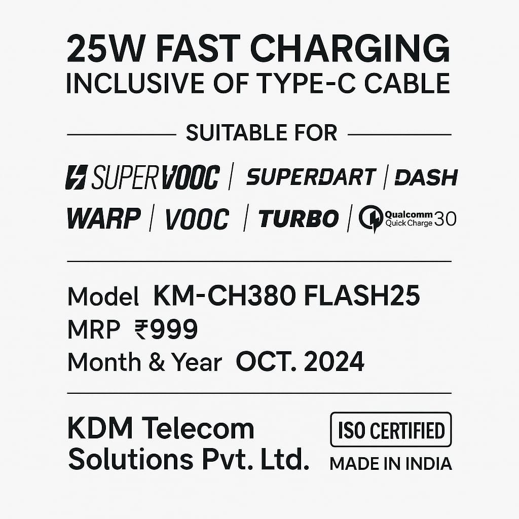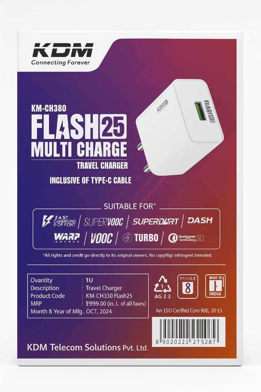 KDM FLASH25 Multi Charge Travel Charger – 25W | Model: KM-CH380