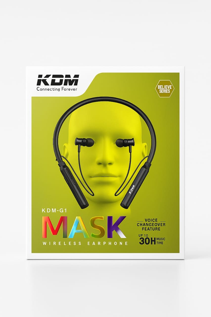 The KDM-G1 MASK Wireless Neckband Earphones offer an excellent combination of design, performance, and durability. Perfect for music, calls, workouts, and everyday use, the G1 delivers HD sound, powerful bass, and long-lasting battery life.