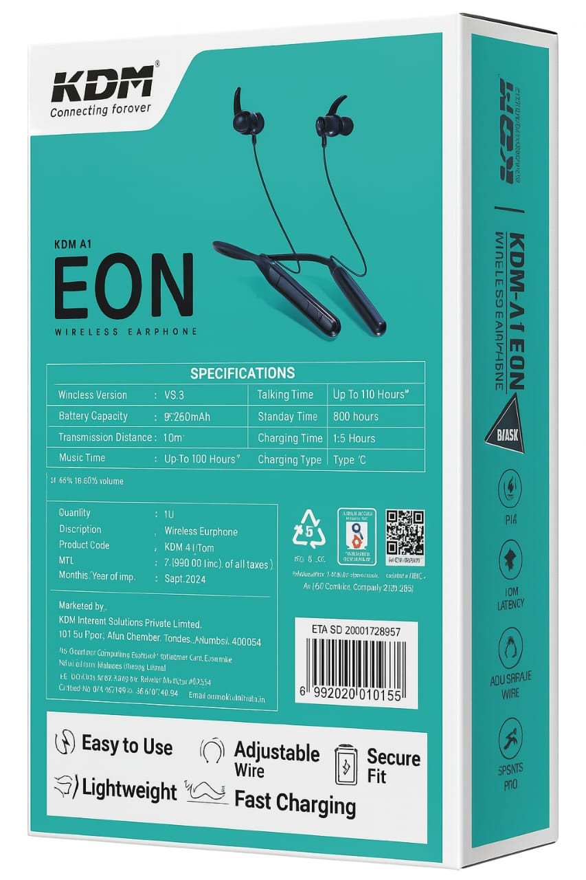 Experience next-level sound and all-day comfort with the KDM-A1 EON Wireless Neckband Earphones. Whether you're taking calls, hitting the gym, or just relaxing with your favorite playlist, these earphones are designed to deliver powerful performance, sleek style, and ultimate convenience – all in one lightweight package.