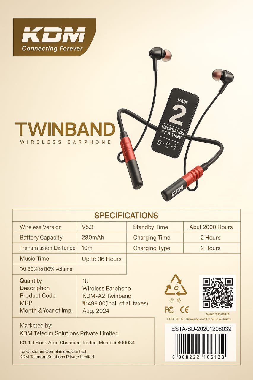 KDM A2 TwinBand Wireless Earphone