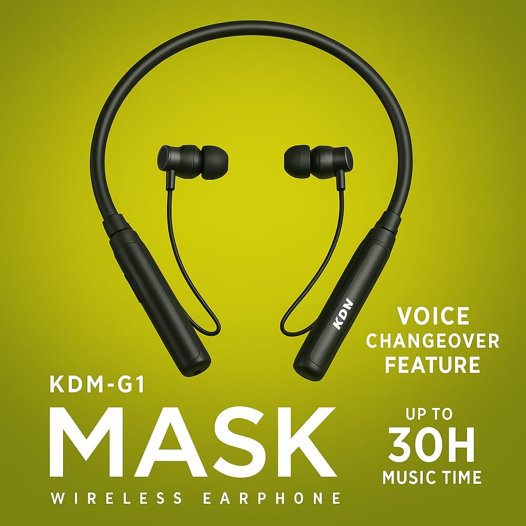 The KDM-G1 MASK Wireless Neckband Earphones offer an excellent combination of design, performance, and durability. Perfect for music, calls, workouts, and everyday use, the G1 delivers HD sound, powerful bass, and long-lasting battery life.