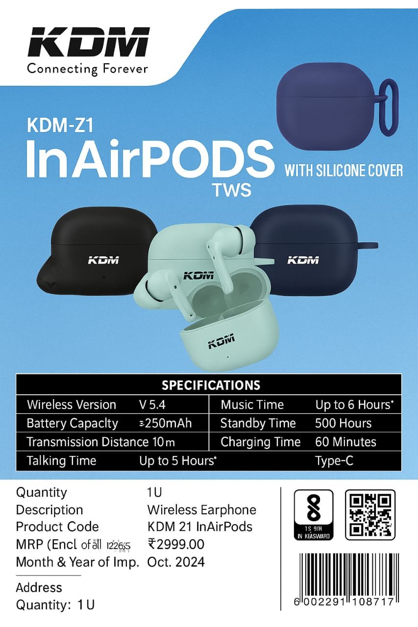 KDM Earbuds | InAirPods TWS | Wireless Earphones | Bluetooth 5.4 Earbuds | KDM TWS Z1 | Long Battery Earbuds | Type-C Wireless Headset | Flipkart TWS Earbuds | 30 Hour Playback | Auto Pairing Earbuds | Stylish Earphones