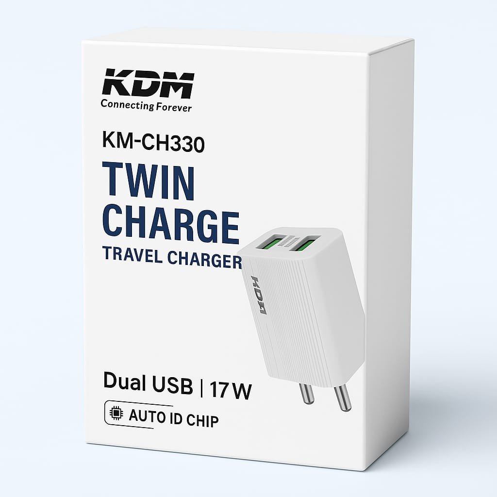 KDM KM-CH330 Twin Charge 17W Travel Charger (Dual USB, Auto ID Chip)