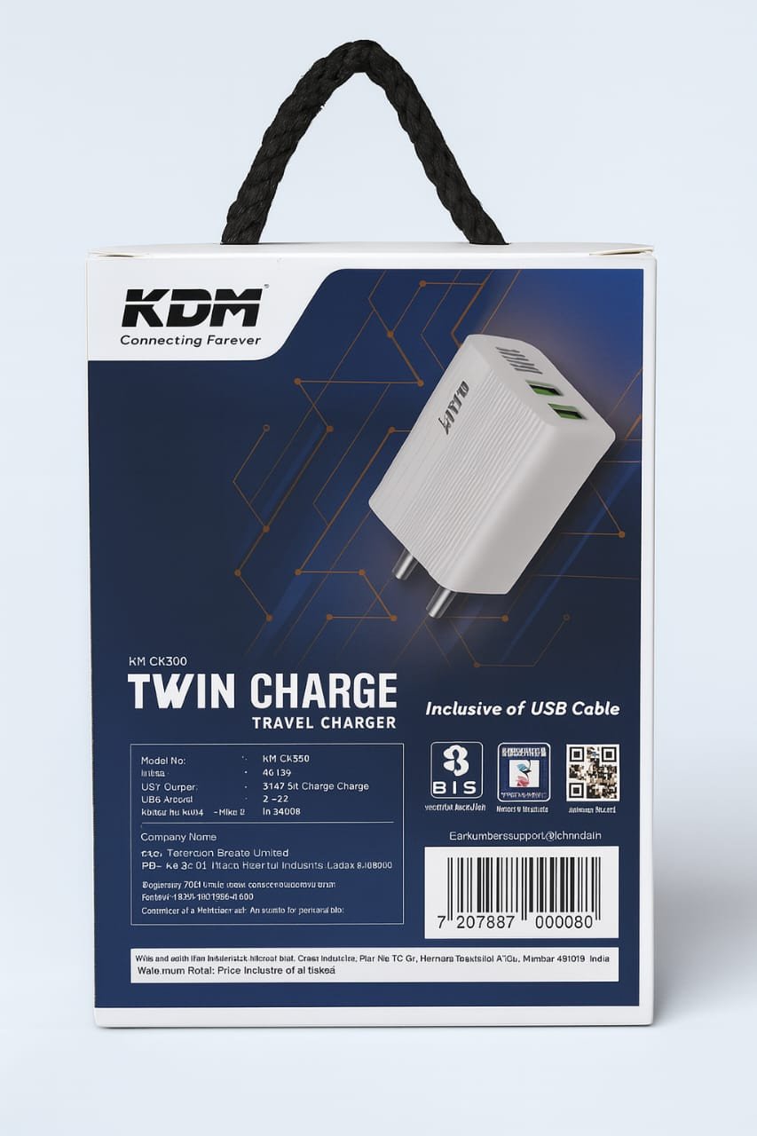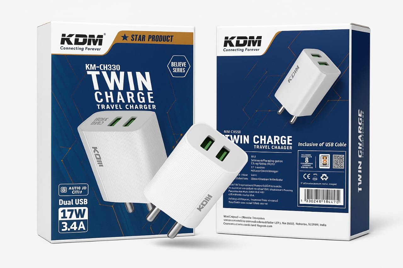 Experience fast and reliable charging with the KDM KM-CH330 Twin Charge Travel Charger. Built for convenience and performance, this dual USB charger ensures that you can charge two devices simultaneously without compromising on speed or safety. Whether you're at home, office, or on the move, this compact and efficient charger is your ideal power partner.