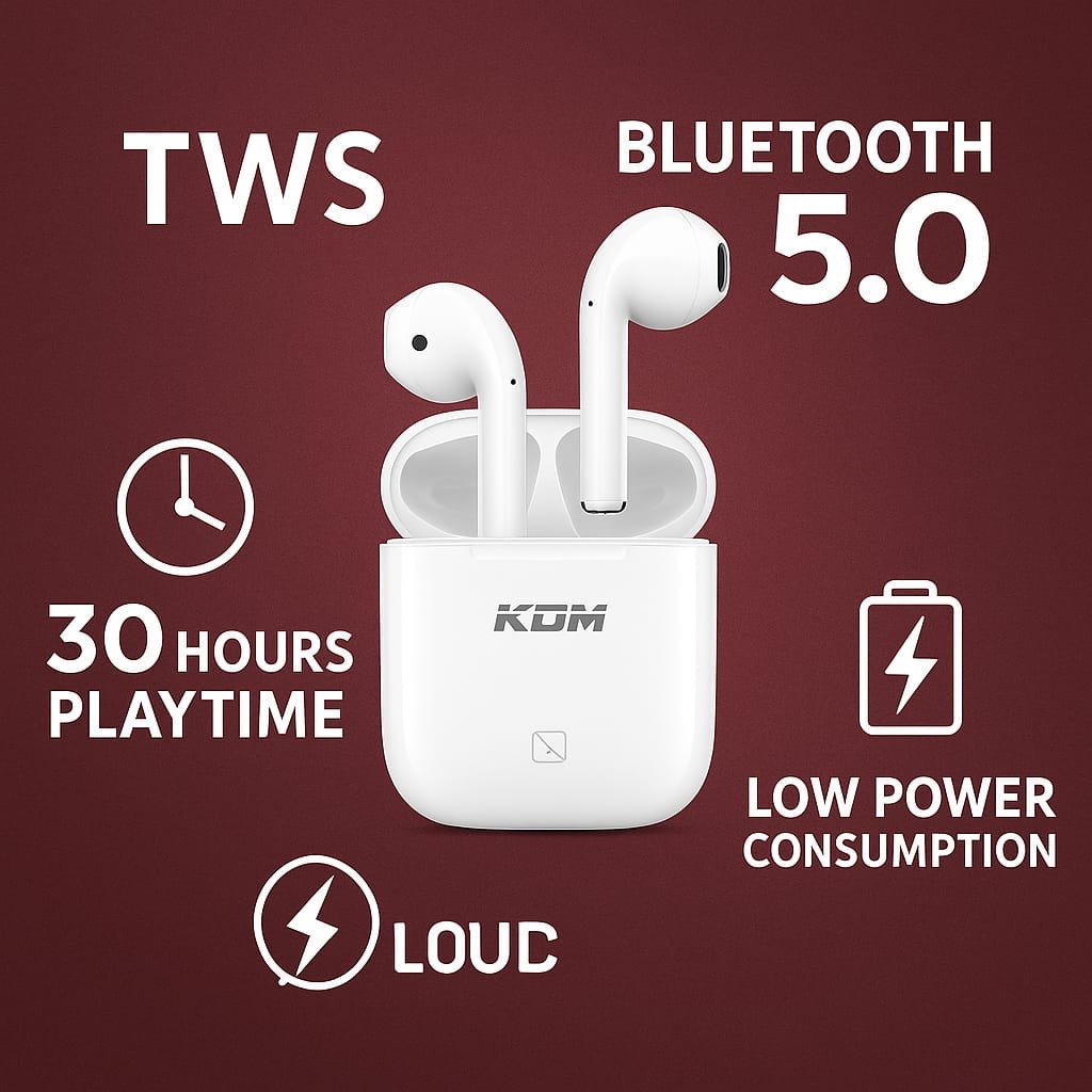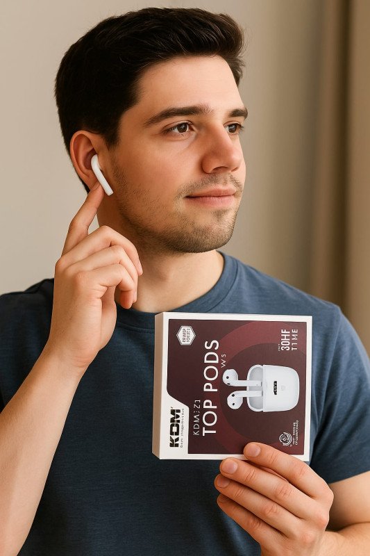 KDM-Z1 TOP PODS TWS are compact and stylish wireless earbuds designed for a powerful audio experience. With Bluetooth 5.0 and a high-quality 250mAh charging case, enjoy up to 30 hours of total playback time. Whether you're listening to music, taking calls, or gaming, these earbuds deliver comfort, clarity, and convenience.
