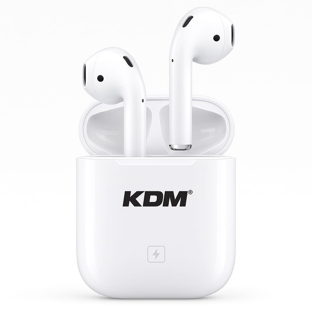 KDM-Z1 TOP PODS TWS Bluetooth 5.0 Wireless Earbuds with 30H Playtime, Touch Controls, Charging Case, Noise Reduction – White