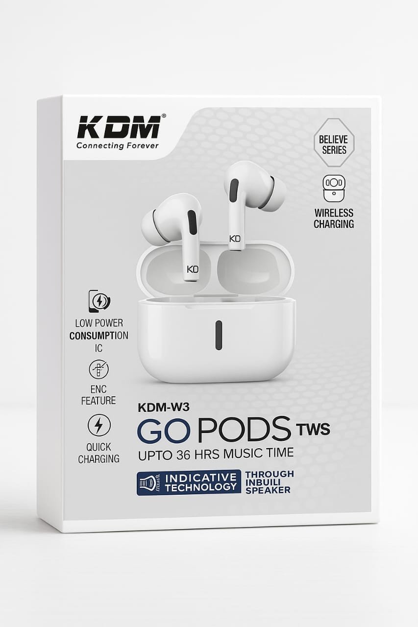 Experience true wireless freedom with the KDM Go Pods V3, designed for modern lifestyles. Equipped with the latest Bluetooth 5.3 technology, these pods offer stable connectivity and crystal-clear audio. Whether you're listening to music, making calls, or watching movies, enjoy up to 6 hours of uninterrupted use on a single charge.