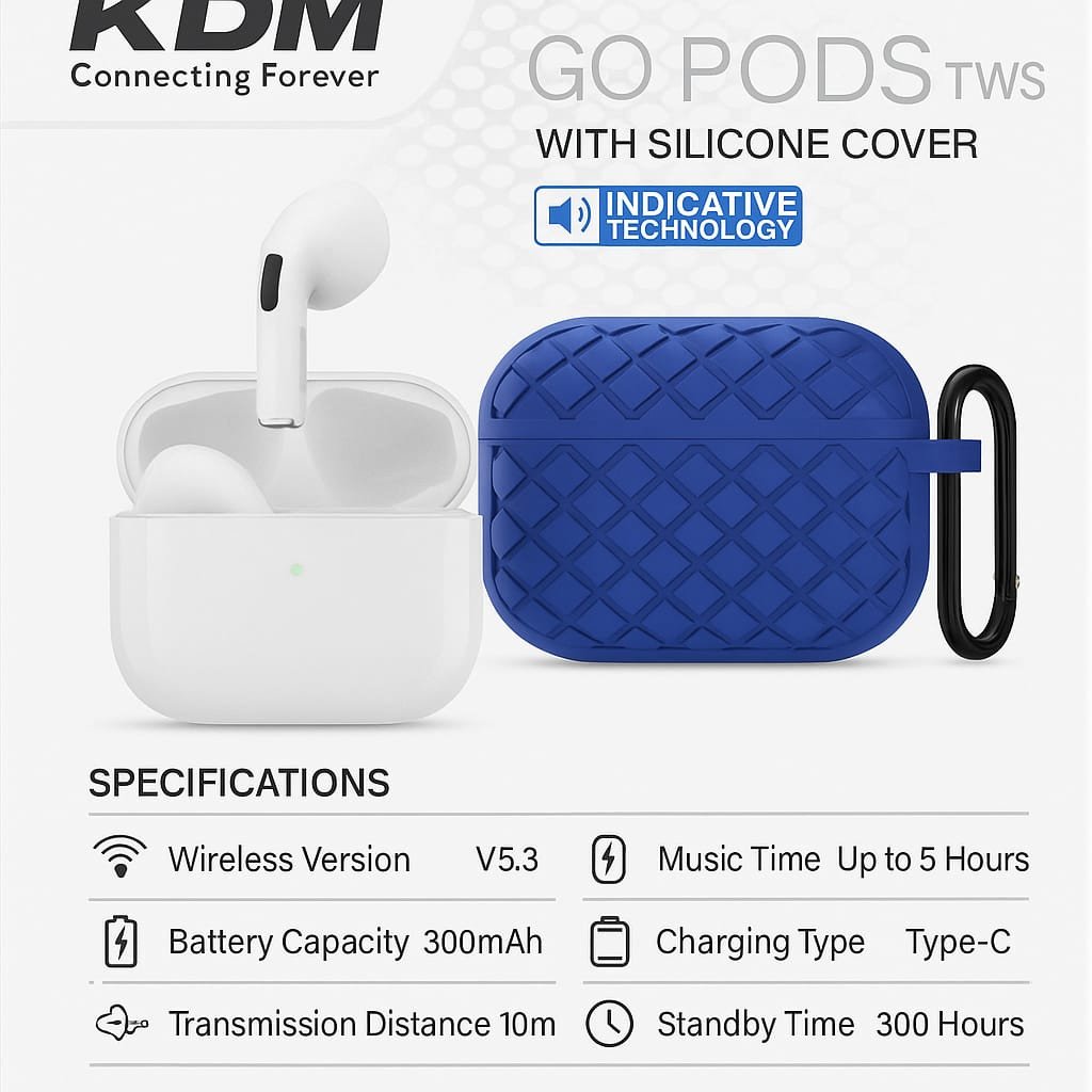 KDM Go Pods W3 with Silicone Cover | Bluetooth 5.3 | Upto 6 Hrs Talktime | Type-C Fast Charging | Blue
