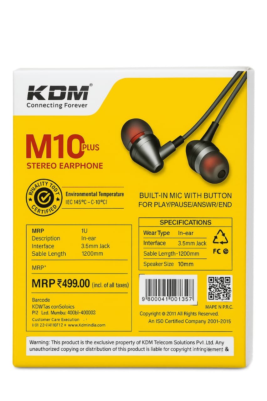 KDM M10 Plus Stereo Earphone with Mic (Black, In the Ear)